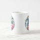 This ceramic coffee mug is shown with a cute farm cow art print.