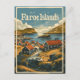 Eine atemberaubende Vintage Darstellung der Färöer Inseln, die ihre wilden Landschaften, dramatische Klippen und malerische Dörfer zeigt. Das Design spiegelt das Wesen dieses abgelegenen Archipels im Nordatlantik mit seinen grünen Hügeln, Wasserfällen und traditionellen, mit Gras überdachten Häusern wider. Das Kunstwerk, das in nostalgischem Stil gehalten ist, erinnert an die zeitlose Schönheit und Ursprünglichkeit der Färöer Inseln und lädt die Besucher ein, seinen einzigartigen Charme und seine unberührte Landschaft zu entdecken.