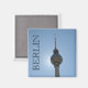 Magnet mit Fernsehturm in der Nähe des Alexanderplatzes, Ostberlin, Deutschland. Erhältlich als Quadrat- oder Rundmagnet. Der Fernsehturm ist ein Fernsehturm im Zentrum von Berlin. Nah zum Alexanderplatz und einem Teil der Weltföderation der Großen Türme (WFGT) wurde der Turm zwischen 1965 und 1969 von der ehemaligen DDR (DDR) erbaut, die ihn als Symbol für Berlin konzipierte, das er heute noch ist, da er in den zentralen und einigen Vorstädten Berlins gut sichtbar ist. Mit einer Höhe von 368 Metern ist es die höchste Struktur Deutschlands.