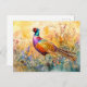 Aquarellmalerei eines Fasans, stehend auf einer Graswiese, mit natürlichem Licht gebadet. Dieses Kunstwerk hebt die Eleganz und die lebhaften Farben dieses Landvogels in seinem natürlichen Lebensraum hervor.