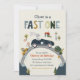 Votre enfant d'un an est rapide ! Invitations amis et la famille à une fête de 1er anniversaire amusante avec cette amusante invitation à thème d'illustrations de voitures et d'animaux vintage.