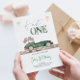 Élevez votre fête d'anniversaire avec notre carte d'invitation "Fast One Retro Race Car". Doté d'une charmante voiture rétro vert émeraude avec un drapeau à damiers et une police "Fast One" ludique, cette invitation donne le ton parfait pour une célébration passionnante et nostalgique. Personnalisable avec les détails de votre événement, il promet de rendre votre journée spéciale encore plus mémorable.
