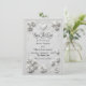 Set the tone for a formal spring celebration with this timeless design featuring a sculpted floral look. A luxurious aesthetic for the classic romantic bride.This design features a sophisticated monochromatic palette of soft white and warm ivory. The artwork simulates a high-end sculpted relief, depicting lush roses and tulip buds interwoven with ornamental scrollwork and curved flourishes. A decorative rectangular frame encloses the text, which pairs romantic calligraphy script with traditional serif typography for a formal appearance.This is a flat printed image with a Faux Embossed effect, not actual raised material.