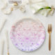 Paper plates with a faux glitter and sequin design in purple, pink, yellow ombre. Perfect for parties, baby showers, easter celebrations and more!