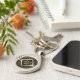 Classy, classic colors on modern simple design. Unique monogram with gold stripes on classic black top and bottom with interchangeable background color. Personalize with yours or family name and initial.
