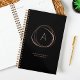 Chic planner en noir classique dispose d'un élément abstrait en or faux rose encerclant votre monogramme initial. Personnalisez avec une ligne de texte personnalisé en dessous de la lettre moderne; nous l'aimons avec votre nom ou nom d'entreprise et l'année. REMARQUE : IL N'Y A PAS DE FOILE D'OR SUR CE PRODUIT. Le look doré rose est produit à l'aide de subtiles variations de couleurs qui imitent l'apparence du papier peint.