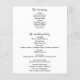 Utilisez votre photo préférée pour créer un programme personnalisé pour votre mariage. Ce programme de feuille plate comprend votre photo sur le devant avec des superpositions de style vellum imitation pour inclure vos informations personnalisées. L'envers comprend un script noir simple et des lettres imprimées en blanc avec beaucoup de place pour inclure tous les détails de votre mariage et les membres de la fête de mariage.