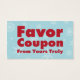 Ajoutez vos enfants ou votre propre image à cette fête unique Favor Coupon. Avant de donner ce coupon à la famille et aux amis, assurez-vous de bien écrire à la main ce pour quoi le coupon est bon. Un cadeau amusant et unique dans cette économie troublante.