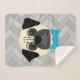 Fawn Pug with bowtie, Herringbone grey Sherpadecke