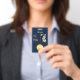 Dunkelblauer Hintergrund mit goldfarbenem Siegel und gold-weißem Text. Fügen Sie Ihr eigenes Foto oder das Ihrer Gäste hinzu.