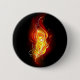 Helle Pfauenfeder aus Feuer und Flamme auf schwarzem Hintergrund.