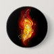 Helle Pfauenfeder aus Feuer und Flamme auf schwarzem Hintergrund.