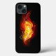 Helle Pfauenfeder aus Feuer und Flamme auf schwarzem Hintergrund.