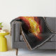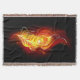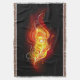 Helle Pfauenfeder aus Feuer und Flamme auf schwarzem Hintergrund.