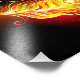 Helle Pfauenfeder aus Feuer und Flamme auf schwarzem Hintergrund.