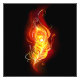 Helle Pfauenfeder aus Feuer und Flamme auf schwarzem Hintergrund.