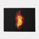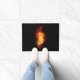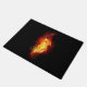 Helle Pfauenfeder aus Feuer und Flamme auf schwarzem Hintergrund.