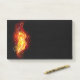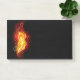 Helle Pfauenfeder aus Feuer und Flamme auf schwarzem Hintergrund.