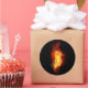 Helle Pfauenfeder aus Feuer und Flamme auf schwarzem Hintergrund.