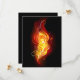 Helle Pfauenfeder aus Feuer und Flamme auf schwarzem Hintergrund.