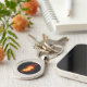 Helle Pfauenfeder aus Feuer und Flamme auf schwarzem Hintergrund.