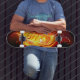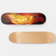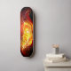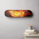 Helle Pfauenfeder aus Feuer und Flamme auf schwarzem Hintergrund.