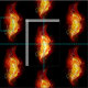 Helle Pfauenfeder aus Feuer und Flamme auf schwarzem Hintergrund.