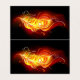 Helle Pfauenfeder aus Feuer und Flamme auf schwarzem Hintergrund.