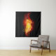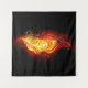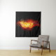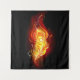 Helle Pfauenfeder aus Feuer und Flamme auf schwarzem Hintergrund.