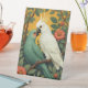 Die Papageien fallen in Liebe. Ein Kakadu und eine grüne Lory. In Foliage mit blühenden Blume.