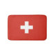 Federmatte | Die Schweiz überquert den Badteppich. Persönliche Badezimmerdekoration mit Schweizer Flagge. Der Teppich im Badezimmer ist sehr elegant. Niedliche Wohngestaltung zugänglich. Patriotische Innendekoration für elegantes Bad. Erhältlich in kleinen, mittleren und großen Größen. Das Hotel liegt sehr zentral, das Wellness-Center und der Schönheitssalon sind gut zu erreichen. Personalisierbarer Text für Name, Monogramm oder Zitat. Rot und Weiß.