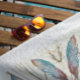 Federn in Aquarellfarbe auf getrocknetem Gras Strandtuch