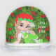Fée d'elfe de Noël moderne mignonne tenant une fleur marguerite et texte Snow Globe. Le texte peut être personnalisé. Idéal pour noël, anniversaire, fête, baby shower et plus encore.