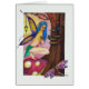 Cette belle fée est perchée sur un champignon, entourée de ses amis libellules.