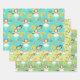 Haar mit braunem Haar und blaues Kleid auf blauem, grünem und gelbem Hintergrund