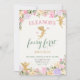 Une jolie invitation à la fée, aux accents dorés et fleuris. Modifiez tout le texte afin qu'il puisse être utilisé pour n'importe quel événement.