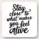 Inspirationssender Untersetzer mit dem Satz "Bleibe nah zu dem, was dich lebendig macht".