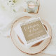 Die Hochzeitsnapkins sind in Drehbüchern mit der Schrift "Feier der Liebe" versehen, mit einem Monogramm der Braut- und Bräutigam-Namen und dem Hochzeitstag, einem bezaubernden illustrierten Grenzdesign der weißen Blumenspitze und einem Hintergrund mit einem rustikalen, kraftbraunen Papier, das strukturiert erscheint.