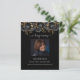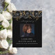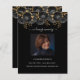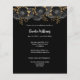 Ein klassischer schwarzer Hintergrund. Schwarz-goldene Blume, Blumenmuster. Personalisieren und hinzufügen von Namen, Daten und Text. Fügen Sie ein Foto hinzu. Beerdigung/Feier der Einladung zum Leben. 1 Blatt = 1 Einladung mit Druckkante bis Kante.