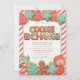 Diese lustige Cookie-Austausch-Feier lädt Sie zu einer angenehmen Ansammlung ein. Mit niedlichen Urlaubskeksen wie Ornamenten, Weihnachtsbaum, Sternen, Schneeflocken, einem Lebkuchenmensch, Bonbons und Weihnachtsgebäck im gestreiften Hintergrund, wird diese Lieblingseinladung sicher ein Hit sein. Die Wörter "Cookie Exchange" werden in bunten Cookie-Buchstaben geschrieben.