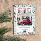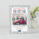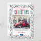 Moderne, individuell bedruckte Weihnachtskarten mit einer einfachen DIY-Vorlage zum Anpassen. Dieses festliche Design zeichnet sich durch farbenfrohe Typografie und einen niedlichen abstrakten Punktehintergrund in Blau, Rot, Grün und Aqua-Farben aus. Fügen Sie Ihre Fotos, persönliche Begrüßung, Namen und das Jahr. Verwenden Sie die Entwurfswerkzeuge, um die Schriftart und Farben zu bearbeiten. Die Rückseite hat Platz, um mehr Fotos und Text hinzuzufügen.