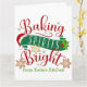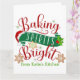Diese Weihnachtskarte enthält den Satz "Backbriefe brennen" in den Farben Weihnachtsrot, Grün und Gold. Das Design umfasst eine Weihnachtsmannmütze, heilig mit Beeren, Weihnachtskeksen und Sternexplosion Akzenten. Personalisieren Sie diese, indem Sie Ihren Namen zur Vorderseite hinzufügen und die Nachricht im Inneren anpassen und/oder Ihren Namen hinzufügen.