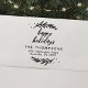 Die Briefmarke aus Gummi für Rücksendeadressen, mit einem zeitlosen Filialmotiv, das den Gruß "Happy Holidays" zusammen mit Ihrem Namen und Ihrer Adresse umrahmt. Diese exquisit gestaltete Briefmarke verbindet Funktionalität mit Eleganz und macht einen bleibenden Eindruck auf jedem Teil Ihrer Urlaubskorrespondenz.