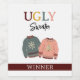 Dieses Ugly Sweater Party Weinetikett wurde mit dem Wort "Sieger" entworfen und ist ein perfekter Preis für die Person mit dem hässlichsten Pullover. Das Design zeigt eine handgezeichnete Grafik von kitschigen Weihnachtssüßern in gedämpften Farben.