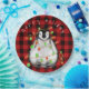 Niedlicher Holiday Pinguin in rot und grün gefeierten Weihnachtsbeleuchtung eingewickelt. Buffalo-kariertes Muster - Original Illustration von H Cooper-