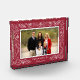 Schaffen Sie sich ein gemütliches Familienmemento und zeigen Sie mit unserem festlichen freistehenden Foto-Block ein wertvolles Foto. Ihr bevorzugtes horizontal/landschaftlich orientiertes Foto wird durch eine Grenze von zarten Blätter und Ästen in Weihnachten-vollkommenen Cranberry Rot und Winterweiß gerahmt. Personalisieren Sie das Programm mit zwei Zeilen benutzerdefiniertem Text in Block und Schrift.