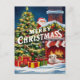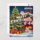 Ein niedlicher Hund sitzt vor einem knisternden Kamin auf einer gemütlichen Weihnachtskarte und schafft so eine herzliche Urlaubsszene.