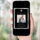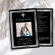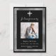 Eine elegante, moderne, einfache Beerdigung/Feier des Lebensprogramms. Ein klassischer schwarzer Hintergrund mit einem silbernen Imitat-Kreuz und Imitaten silberne Rahmen. Personalisieren und fügen Sie einen Namen und Details des Fotos hinzu. Weißer Text.