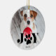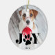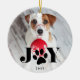 Geben Sie Ihrem Furry-Freund zu Weihnachten einen besonderen Platz auf dem Baum mit unserem Festpaws Foto-Ornament. Das Design zeigt Ihr Lieblingshund oder Foto mit "JOY" überlagert in schwarz. An die Stelle des "O" tritt eine süße paw-Druckvorlage. Personalisieren Sie sich mit dem Jahr unten. Der Ornament kehrt zurück, um ein festliches nordisches Pullover-Muster in Schwarz-Weiß zu enthüllen.
