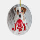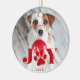 Geben Sie Ihrem Furry-Freund zu Weihnachten einen besonderen Platz auf dem Baum mit unserem Festpaws Foto-Ornament. Das Design bietet Ihr Lieblings-Hund oder Katz-Foto mit "JOY" überlagert in lebendigen Ferien-Rot-Typ. An die Stelle des "O" tritt eine süße paw-Druckvorlage. Personalisieren Sie sich mit dem Jahr unten. Der Ornament kehrt zurück, um festliche nordische Pullover-Muster in rot und weiß zu enthüllen.